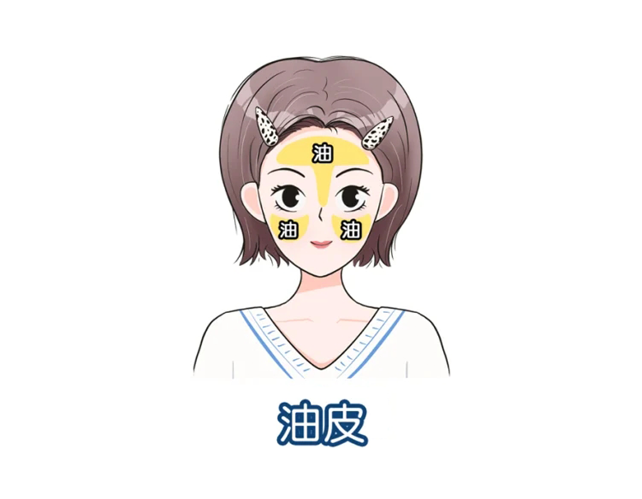 T区和脸颊都有出油,皮脂分泌比较旺盛;易长黑头,喜欢长痤疮。