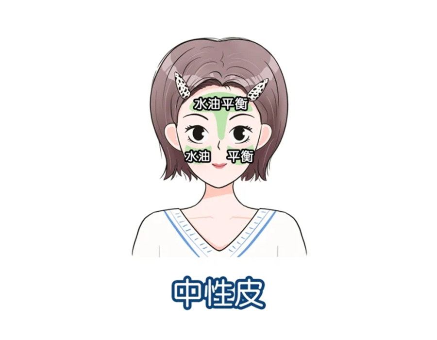 脸部水油平衡,没有紧绷感,有时可能受季 节变化夏趋于油,冬天趋于干。